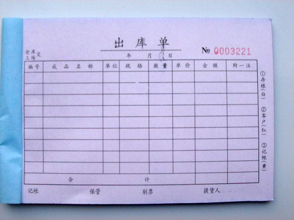 二、票据联单印刷用的什么纸? 票据联单印刷表面用纸是牛皮纸、内页用纸是无碳原浆复写纸,无碳复写纸是一种隐色复写纸,能够直接复写,它主要是在外力作用下,使微胶囊中的力敏色素和油溶液溢出与显色剂接触后发生染色反应,从而起到复写的作用。无碳复写纸可分为他显色和自显色两种,按纸的颜色分有红、黄、绿、蓝、白五种;按显现的色迹分有蓝、黄、橙、黑、红等颜色,票据联单分为手写联单和机打联单,手写联单通常用55g的无碳复写纸,机打的以三联票为例:一层用48g、第二层用50g、第三层用48g的无碳复写纸。 |