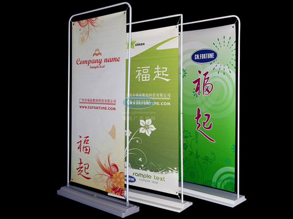 门型展架形状似门型而得名,海报画面四角打扣,并四角固定在门型展架四角。
